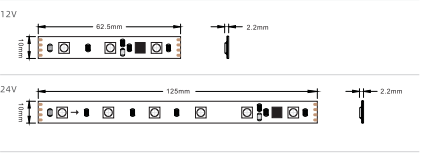 12V | 5M | 10MM | 2.20MM | Every 62.5MM(3LEDs) |