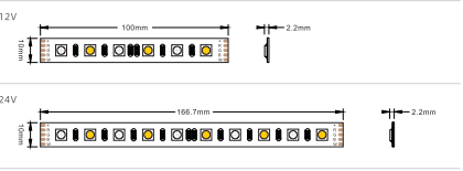 24V | 5M | 10MM | 2.20MM | Every 166.7MM(12 LEDs) |