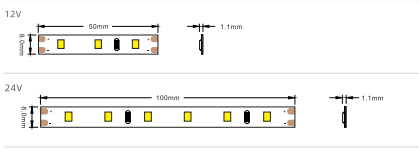 24V | 5M | 8MM | 1.10MM | Every 100MM(6 LEDs) |