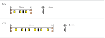 12V | 5M | 5/8/10MM | 1.10MM | Every 25MM(3 LEDs) |