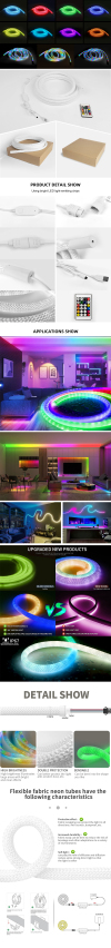 New Designed High Brightness IP67 Nylon Fabric RGBIC Neon Flexible Strip 360 Angle DC5V App Control Smart LED Neon Light
